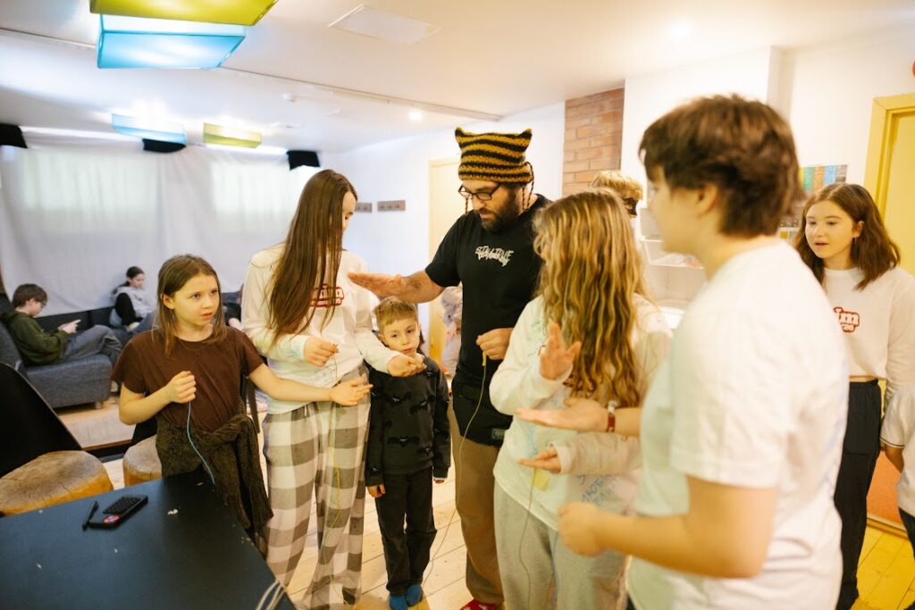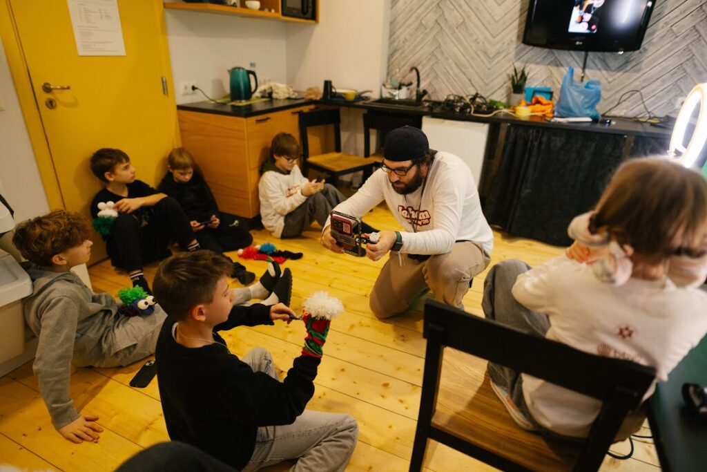 Все участники лагеря приняли участие в воркшопе «Мой носок звезда Тик-Тока» Носки, шарики от пин-понга, нитки и клей стали основой для создания кукол на руке. Потом мы придумывали голоса и походку для персонажа. В итоге получился анимационный фильм о жизни в лагере.